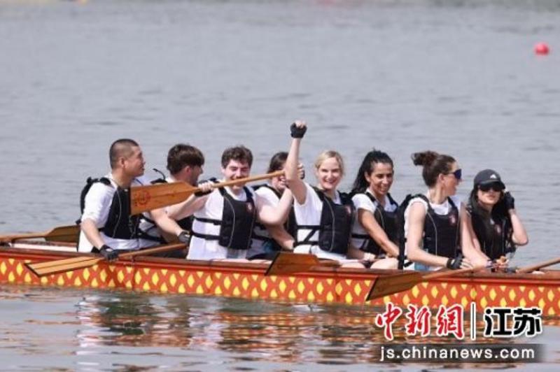 フランス、ドイツ、アメリカ、ロシア、ブラジル、英國、スイスなど15カ國?地域から9つの海外チーム172人は今年の金鶏湖ドラゴンボートレース參加した。