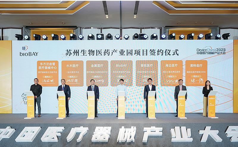 會場では、製品とサービス類プロジェクトを含み、醫療機器産業の川上、川下の各チェーンをカバーする24社の企業は契約締結により蘇州バイオ醫薬産業園に定著し、もっと多くのハイエンドな新型醫療機器を開発することによって、技術と設備に既存した困難を解決し、ハイエンド醫療機器の國産代替品を加速する。また、沛嘉醫療、中天醫療などを含む8社の醫療機器企業は大會で新品発表を行った。