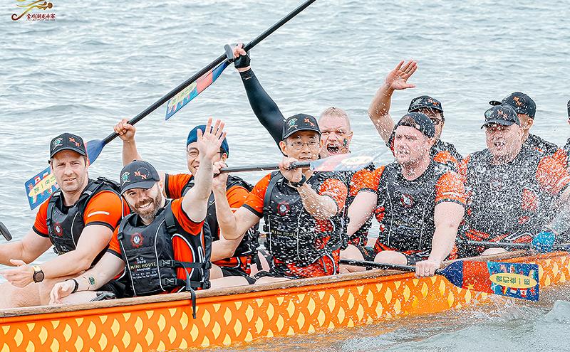 今年の金鶏湖端午ドラゴンボートレースに7つの海外チームが參加し、人數が126人で、全體の10%を占め、それぞれシンガポール、オーストリア、スイス、ドイツ、ロシア、フランス、アメリカ、ニュージーランドなど15ヵ國と地域からである。今年は初めて國際招待戦を設け、シンガポールのチームを招待し、中國とシンガポール両國の多元的な文化交流を強化し、両國の友好関係の発展を促進する。