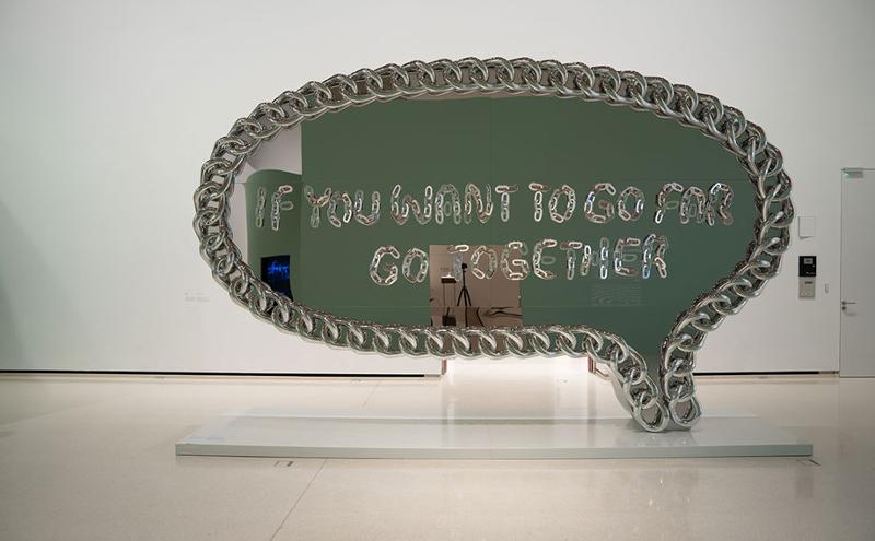 展示ホールの2階には、幅約6メートル、長(zhǎng)さ約4メートルの巨大なインスタレーション作品『IF YOU WANT TO GO FAR, GO TOGETHER』が大注目を集めた。同展覧會(huì)のハイライトとして、この作品はアーティストの徐震氏によって心を込めて制作された。このインスタレーションは、アートの言語(yǔ)を用いて中國(guó)とシンガポールの協(xié)力の成果を生き生きと解釈すると同時(shí)に、「未來(lái)に向けて、中國(guó)とシンガポールは引き続き手を攜え、肩を並べていく」という展覧會(huì)のビジョンも明確に示している。
