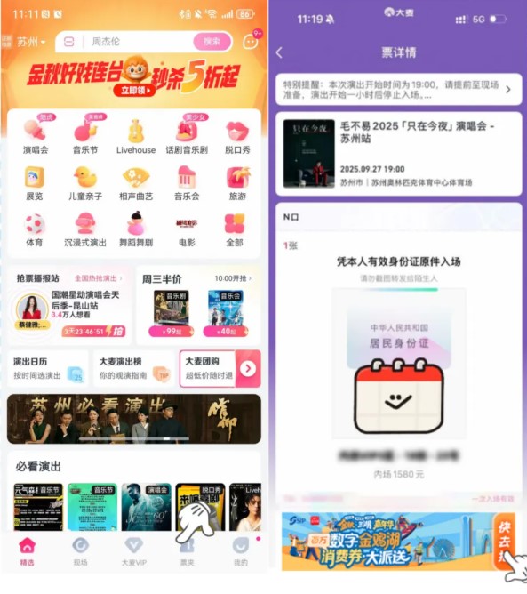消費者在大麥購買的蘇州大市范圍內的演藝、賽事門票,可在大麥APP門票頁面點擊“金秋·三湖嘉年華”活動頁兌換園區超值福利禮包,覆蓋蘇州中心、圓融時代廣場、李公堤、斜塘老街、月光碼頭等商圈,以及農樂園、江邊城外、金海華、享德來、月牙彎、7分甜等餐飲品牌,實現觀演與消費的雙重體驗,也讓看一場演出、品城市煙火,成為這個金秋最鮮活的注腳。