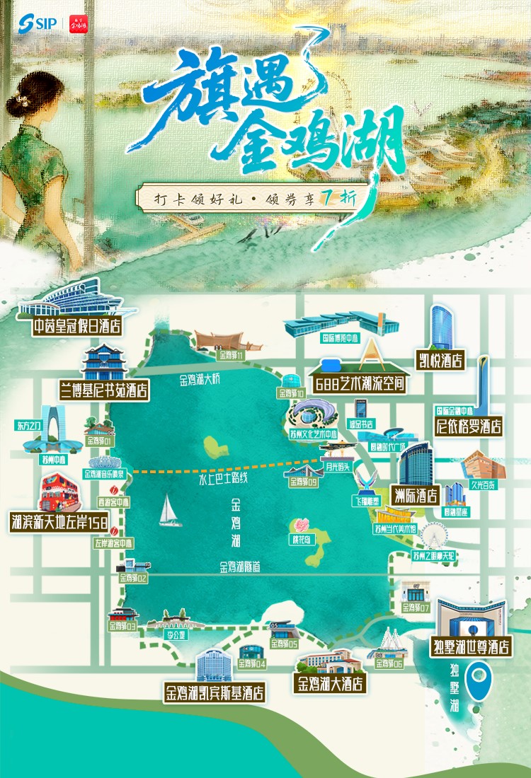 活動期間,園區相關酒店除了住宿優惠,還推出時令品鮮、特色下午茶、親子團聚、情侶約會等特惠套餐。消費者還可以折價購買金雞湖船票、“蘇州之眼”摩天輪門票和品質好物,搶購9.9至99元的城市嗨玩、嗨夜、嗨食福利禮包,大幅降低文旅體驗成本,讓“游在園區”增添更多美好回憶。