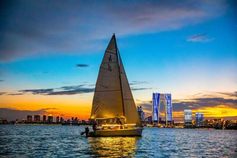 市民可通過“八旗SAILING”小程序進行預約,跟隨賽隊參與夜航體驗,乘帆船漫游金雞湖,沉浸式欣賞東方之門燈光秀,感受夜色中的水岸魅力。