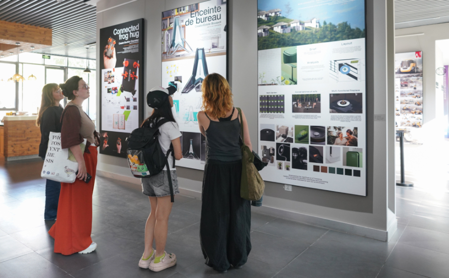 藝術周開幕當日,“中法青年設計師邀請展”在明?美術館啟幕,70余件中法兩國新銳設計師作品,直觀呈現青春創意,為城市生活與未來發展注入的全新活力。園區高校大學生駐足參觀,他們表示:“這些作品涵蓋視覺設計、產品設計、動畫設計等領域,與我們的專業高度契合,不僅能激發創作靈感,更讓我們直觀感受到設計在城市發展中的重要價值,也見證了中法青年藝術創意的碰撞火花。”