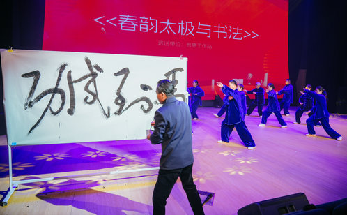 整場演出圍繞“錦繡河山·盛世歡歌”“雅韻流芳·吳儂傳情”“華彩律動·時代風采”“初心綻放·幸福回響”四大主題徐徐展開。從《五星紅旗》的舞動盛世到《次真拉姆》的江南風韻,從《祖國的好江南》的歌聲禮贊到滬劇評彈的吳儂婉轉,舞臺流轉間盡展斜塘文脈的深厚底蘊。隨后,《快樂秀》走出時代風采,《春韻太極與書法》剛柔相濟,《懷鄉曲》寄托家國深情,最后《我愛你中國》將情感推向高潮,鋪展出一幅傳統與現代交融的文化長卷。
